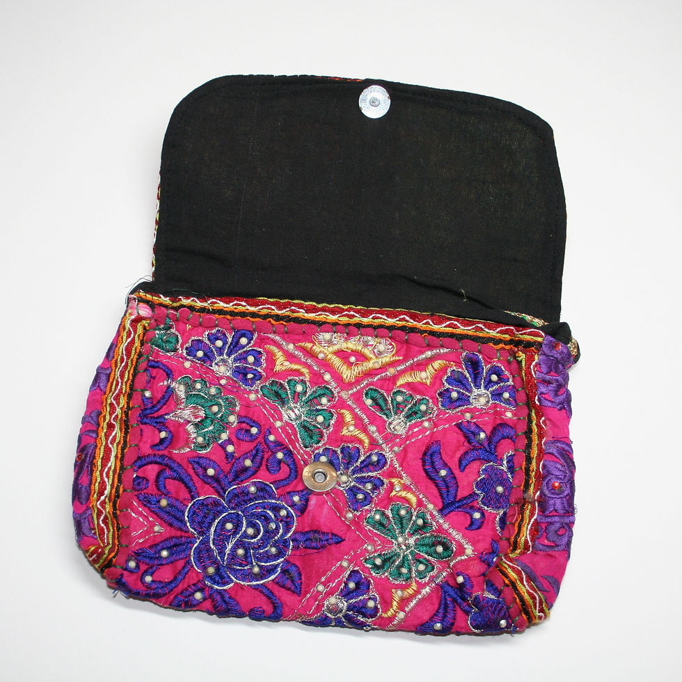 Brighten up any outfit with a upcycled patchwork bag, a hand embroidered shoulder purse or a 100% cotton backpack.